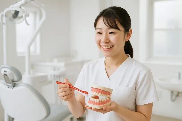 「なぜむし歯になってしまったのか」「今後むし歯や歯周病を繰り返さないために何が必要か」は、歯を削る治療だけでは改善できません。 原因となっている生活習慣やお口のケアの方法を見直さないままでは、同じ部位を何度も治療することになり、結果として歯の寿命を縮めてしまいます。再治療を重ねていくうちに、最終的には抜歯以外に選択肢がなくなってしまうケースも少なくありません。 そこで当院では、同じ歯科衛生士が継続してお口の中を拝見することで、「小さな変化に早く気づきやすい」「むし歯や歯周病の「芽」の段階で対応しやすい」 というメリットを活かし、予防と早期対応に力を入れています。